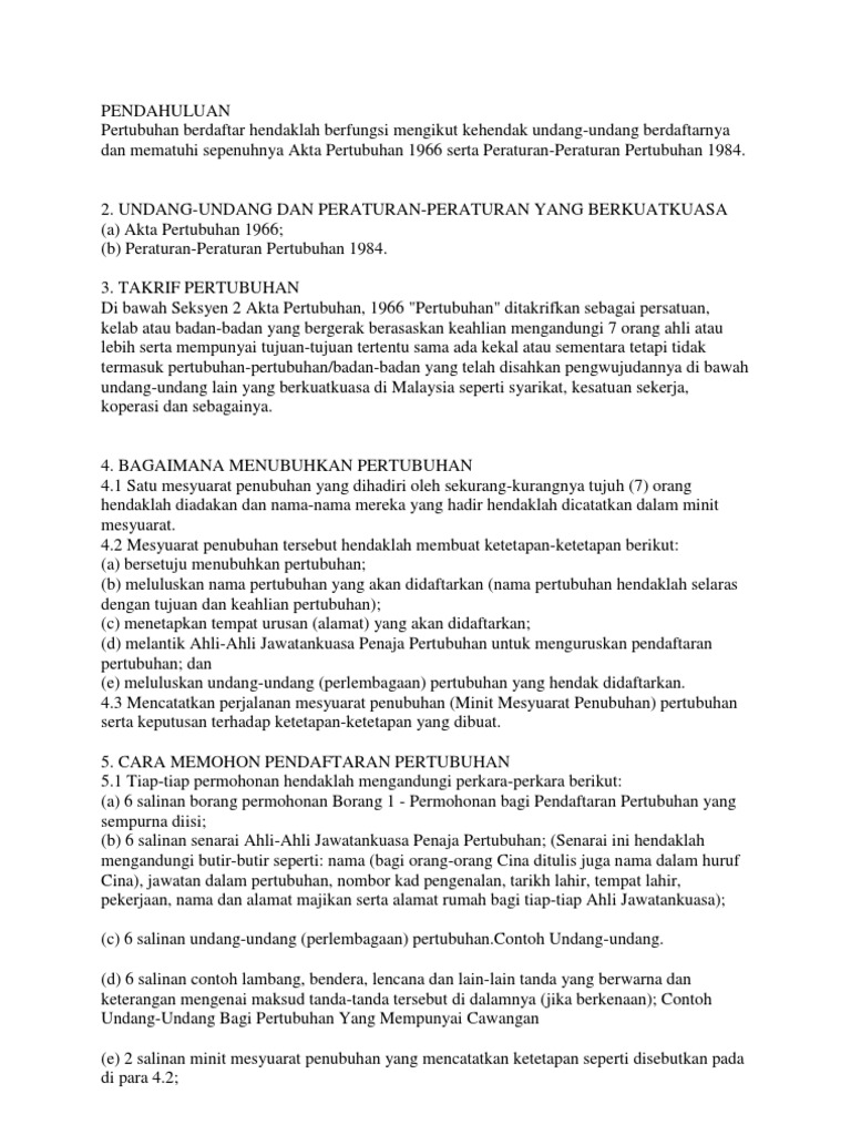 Related : Cara Penubuhan Persatuan Di Malaysia - Dalam perlembagaan pum sendiri fasal 111 yang menjelaskan tujuannya:.