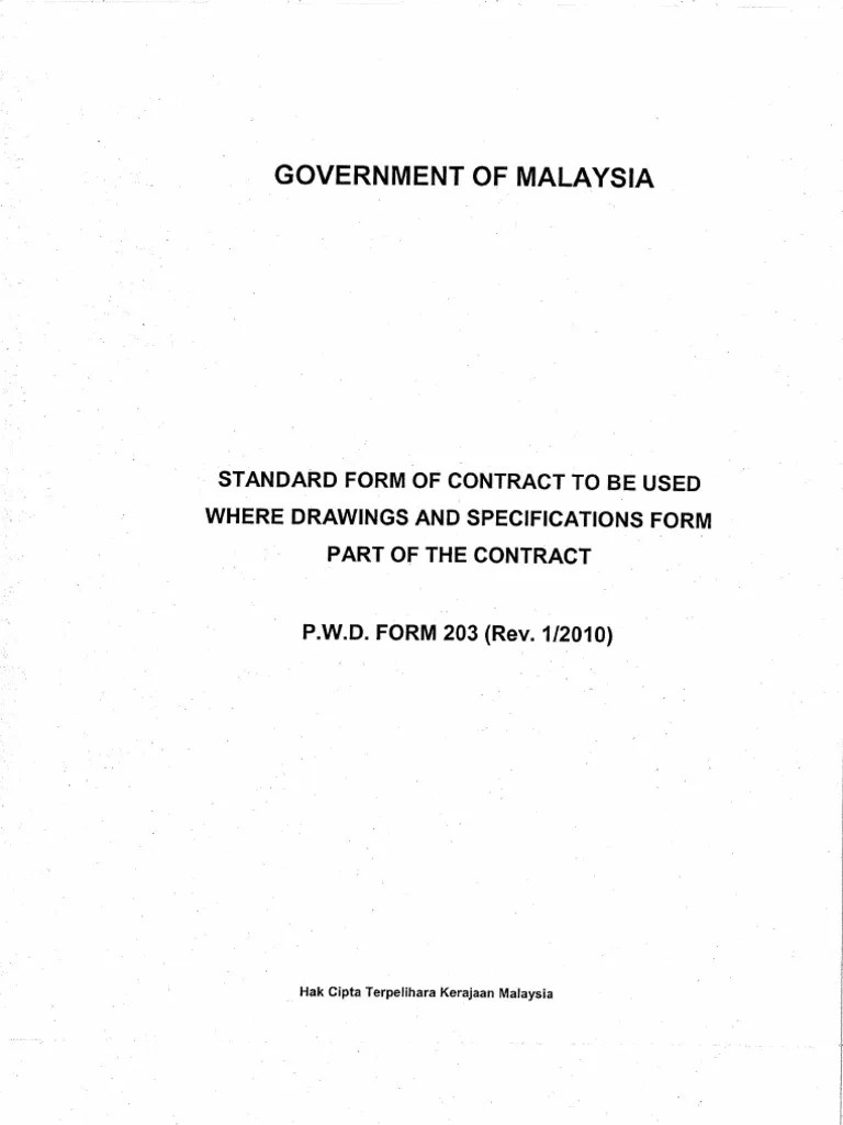 Certificate of partial occupation perakuan serahan kerja siap perakuan serahan kerja siap 6 standard form of contract (this page is deliberately left blank) 1) practical completion a) based on pwd form 203/203a (rev. In accordance with clause 24 hereof shall be measured and valued by the s.o. Panduan/spjps bil2.kontrak pwd form 203a/203 (klausa 44) pwd form db (klausa 50) iaitu. No certificates of the s.o. This form of contract contain no expressed provision that allows the contractor to.